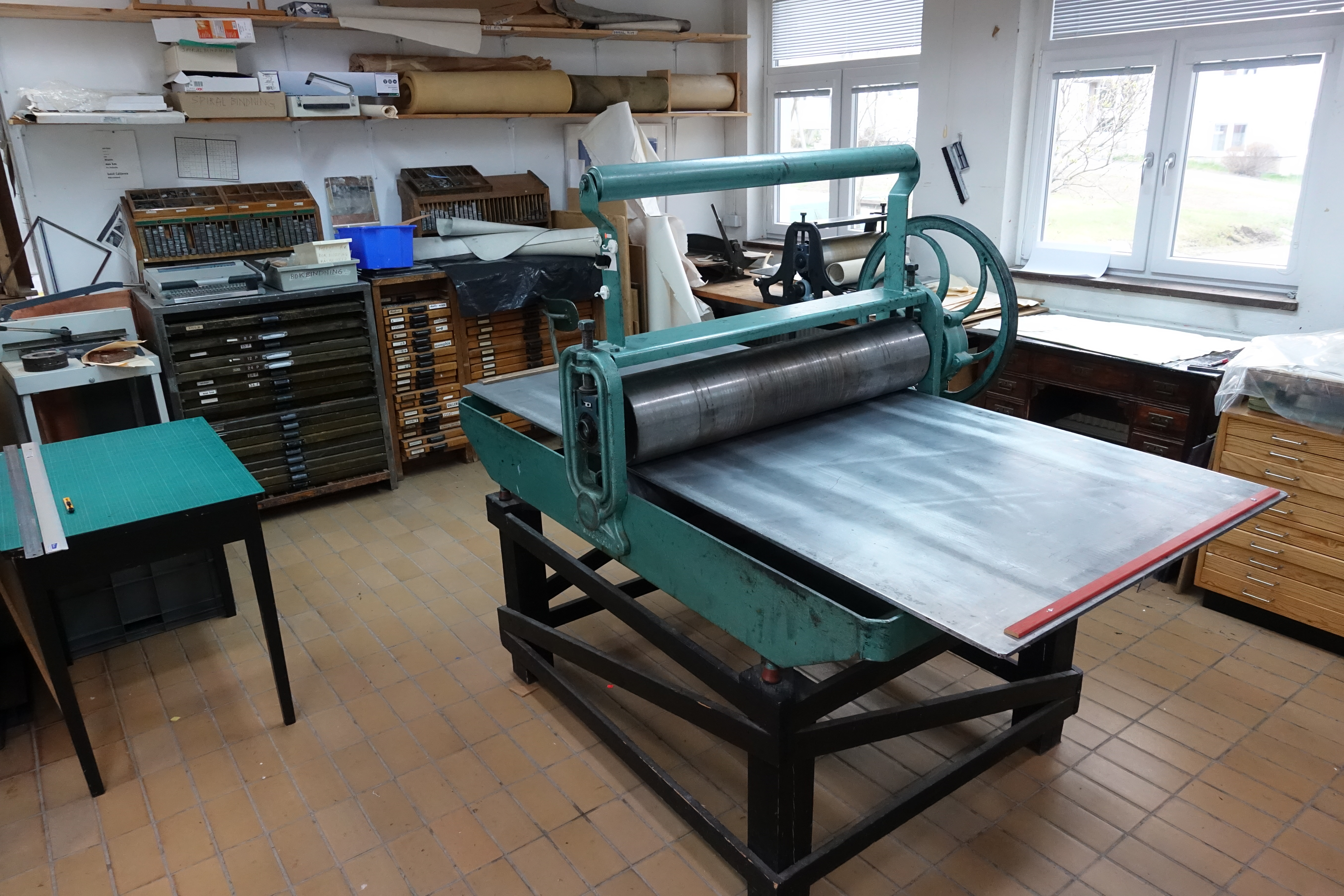Avdragspress för linoleum och träsnitt, 40 x 50 cm.