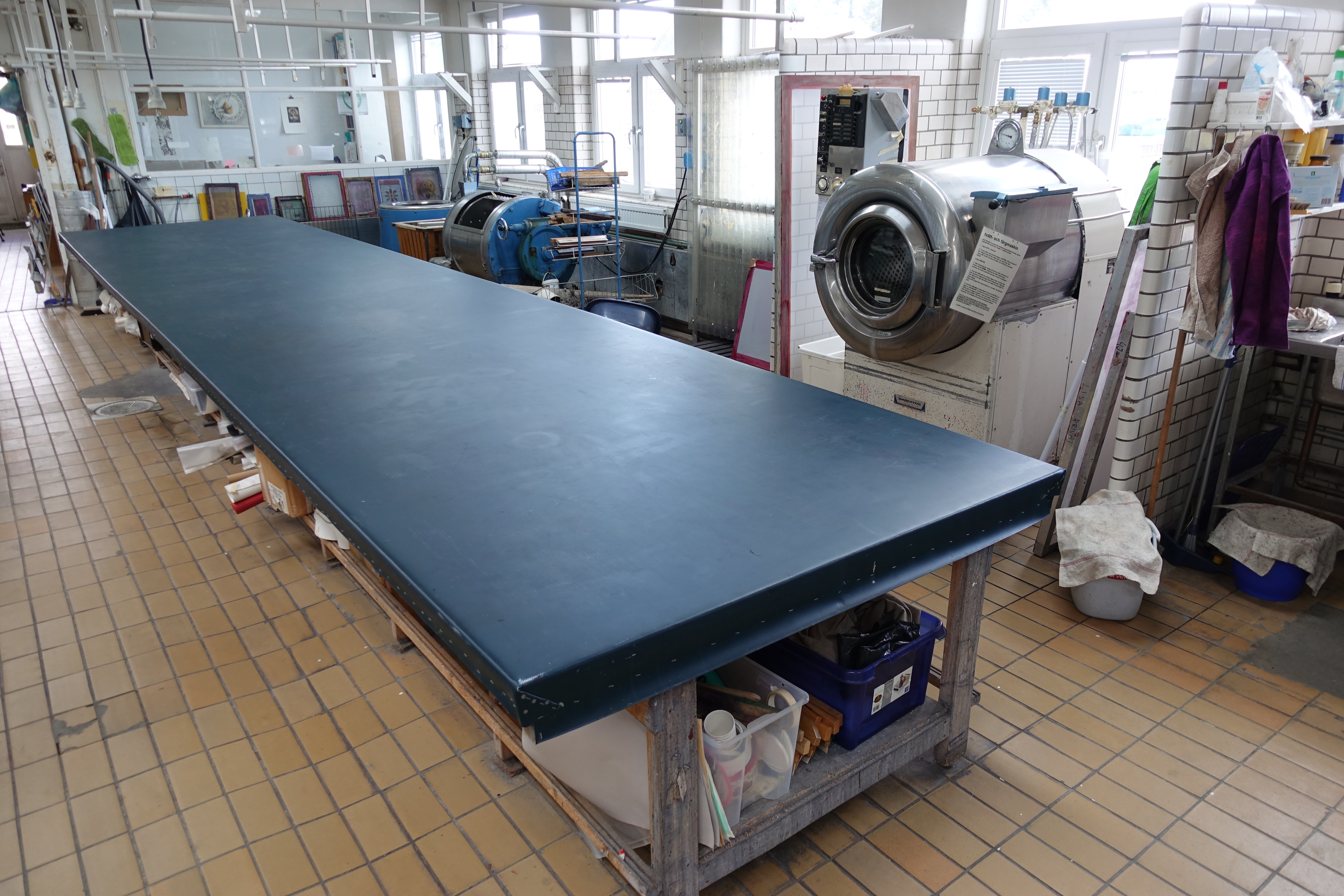 Koppartryckspress 100 x 190 cm bred med tillhörande tryckfiltar .